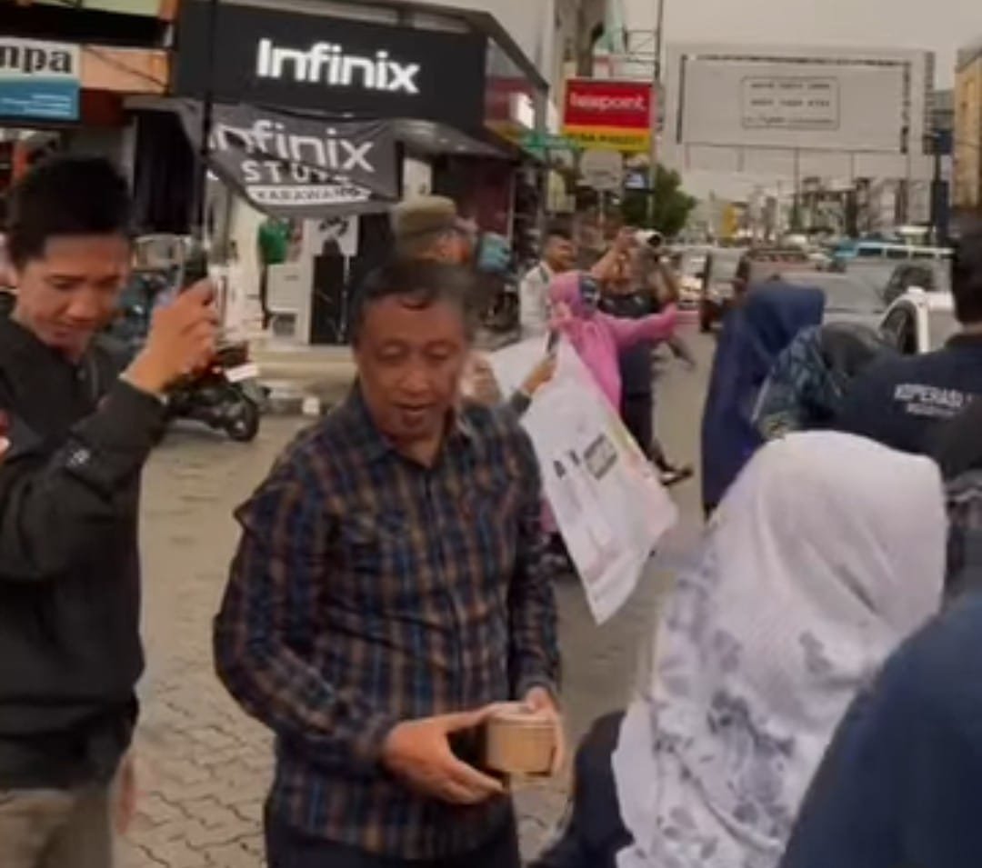 KARAWANG | RENGASDENGKLOKNEWS.COM | Dinas Koperasi dan UKM (Dinkop UKM) Kabupaten Karawang bersama Bupati Karawang, H. Aep Syaepuloh, melaksanakan kegiatan berbagi takjil kepada para pengguna jalan di kawasan Tuparev, tepatnya di sekitar lokasi “Karawang Kuliner Malam”, Sabtu (8/3). Kegiatan ini merupakan bentuk kepedulian terhadap masyarakat yang tengah menjalankan ibadah puasa di bulan suci Ramadhan.