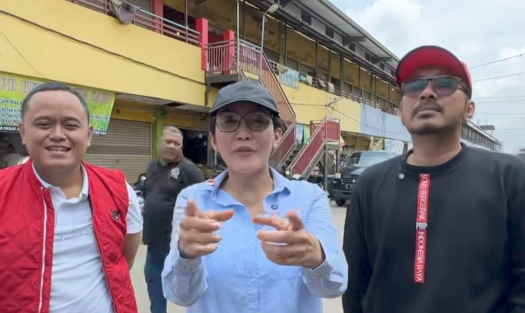 KARAWANG | RENGASDENGKLOKNEWS.COM | Anggota Komisi VI DPR RI, Rieke Diah Pitaloka, didampingi oleh Anggota DPRD Provinsi Jawa Barat, Pipik Taufik Ismail, serta Ketua Bidang Hukum DPC PDIP Karawang, Yono Kurniawan, melakukan kunjungan ke Pasar Johar, Karawang, Minggu (9/3/2025).