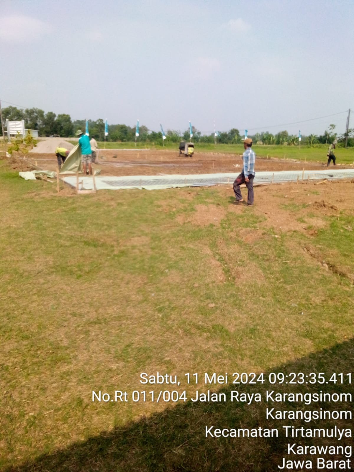 KARAWANG || RENGASDENGKLOK. COM||Pengerjaan proyek pembangunan lapangan tenis dari Dinas Pendidikan dan Pemuda Olahraga (Disdikpora) Karawang di SMPN 3 Tirtamulya diduga tanpa adanya papan nama proyek.