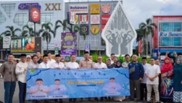 KARAWANG | RENGASDENGKLOKNEWS.COM | Sekretaris Daerah (Sekda) Kabupaten Karawang, H. Asep Aang Rahmatullah, bersama jajaran Sekretariat Daerah Kabupaten Karawang menggelar aksi berbagi takjil di Bunderan Ramayana Karawang,” Minggu (9/3/2025).